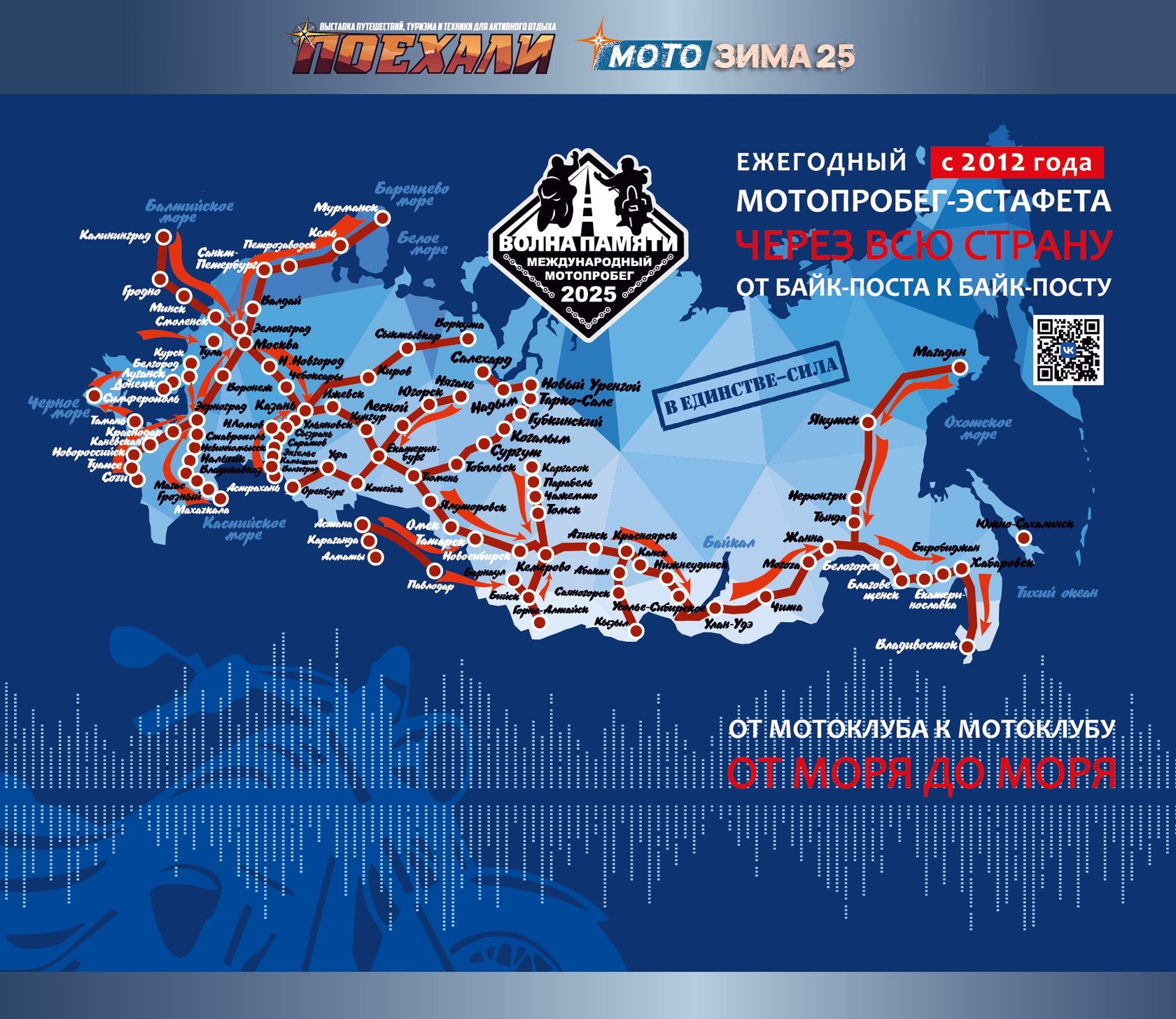 А в воскресенье, 16 ноября, на сцене В1 павильона В в 11:00 узнаем все про Международный Мотопробег «Волна Памяти». Ежегодный мотопробег-эстафета через всю страну от байк-поста к байк-посту, от моря до моря, от Мотоклуба до мотоклуба.