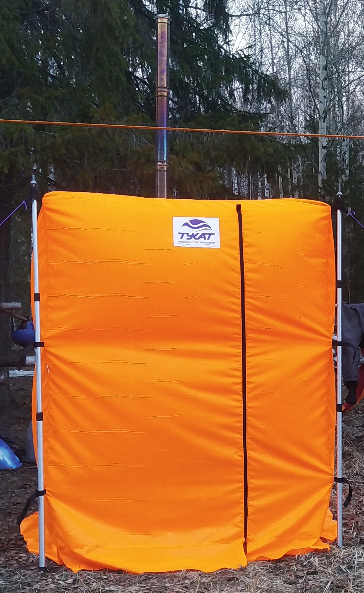 Мобильная походная баня-палатка сделана из прочного синтетического материала, который устойчив к солнечным лучам и высоким температурам. Ткань Оксфорд 300Д ПУ3000 - износостойкая, отлично «держит» тепло, не промокает и проста в уходе. По нижнему краю пришита ветрозащитная юбка для уменьшения теплопотерь. Малый вес походной бани, за счёт более лёгкого материала, позволит брать её в пеший поход. Баня устанавливается на 4 стойки из подручного материала при помощи петель и оттяжек. Незаменимая вещь на сплавах - можно использовать не только как баню, но и как место для переодевания, как полевую кухню или как место для хранения снаряжения.
