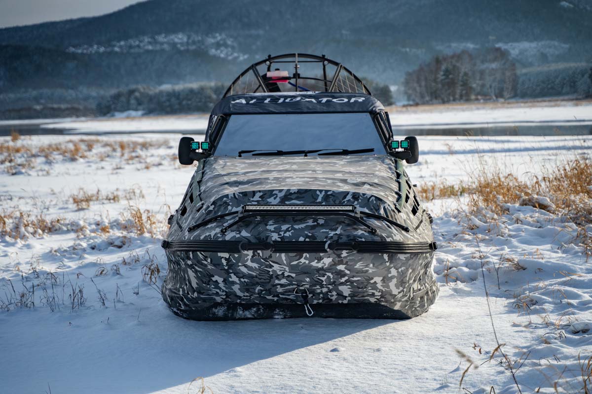 Выпускается в длинах плота 5,9 и 6,5 метра. Отдельный электродвигатель поддува нагнетает мощный поток воздуха, через специальные отверстия в корпусе прямо под днище лодки. Это создает эффект кавитации, снижая трение лодки о поверхность. Поток воздуха равномерно распределяется под днищем и выходит из под каждого сегмента чешуи с максимальной эффективностью. Это улучшает скольжение и дает 8 ценных преимуществ!