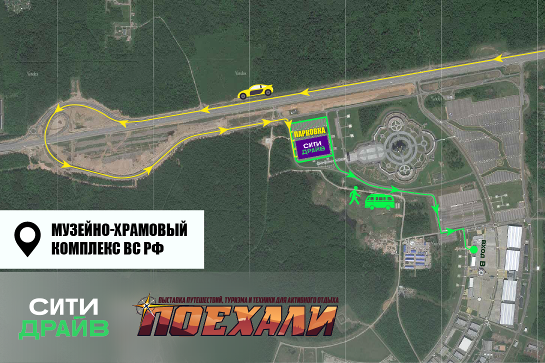Вы можете приехать на выставку на каршеринге и оставить автомобиль на специально выделенной парковке (смотрите схему).
